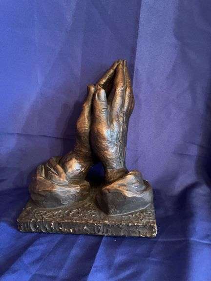 Vintage Marwal bronze color praying hands figurine 11” tall