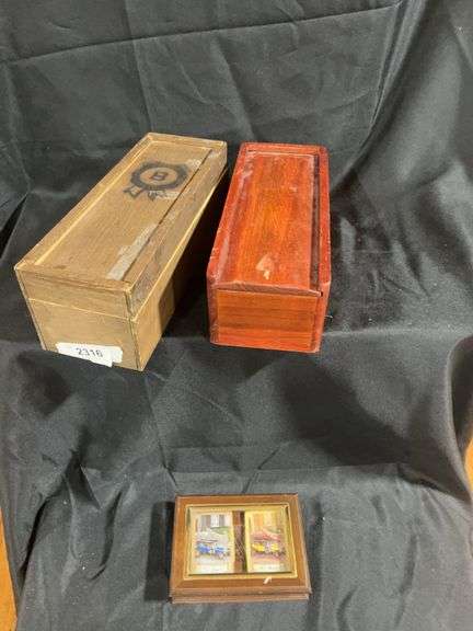 Wood box with lift lid, sliding lid, box holding two decks of cards