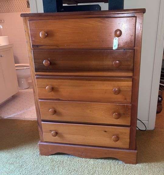 5 drawer chest of drawers. 30 inches wide by 16 inches deep by 42 1/2 inches tall