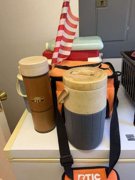 Drink coolers, soft side cooler, small cooler, vintage Thermos container