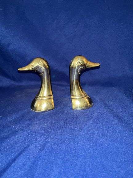 pair of brass duck head bookends.