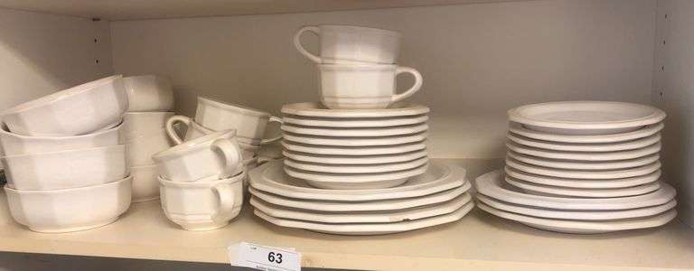 Chip noted on a dinner plate. 8 bowls, 4 plates, 8 bread plates 7 cups and 8 saucers.