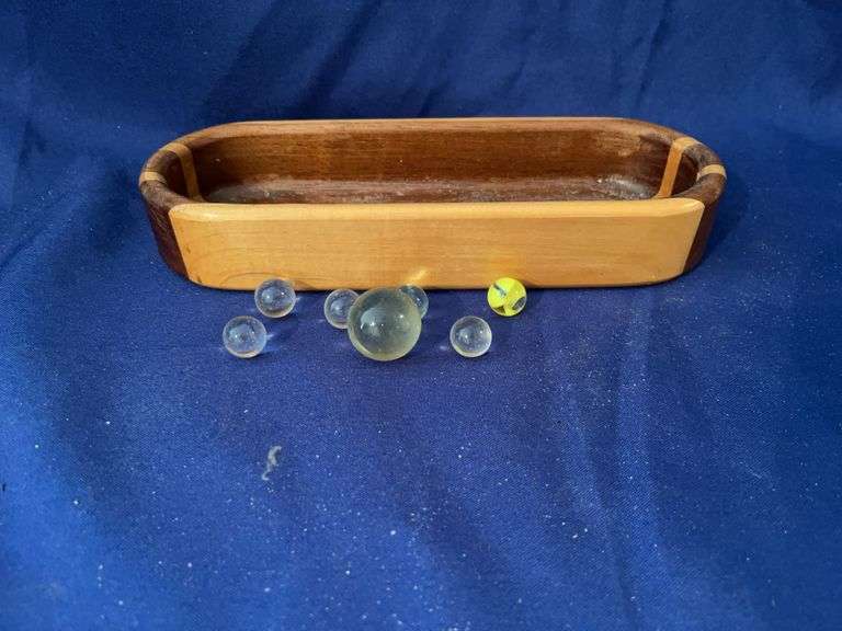 LOT 136 - Wood tray and marbles