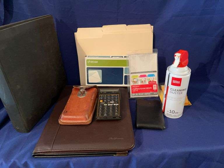 vintage Hewlett-Packard HP-41CV scientific calculator, file folders, envelopes, post it notes and more