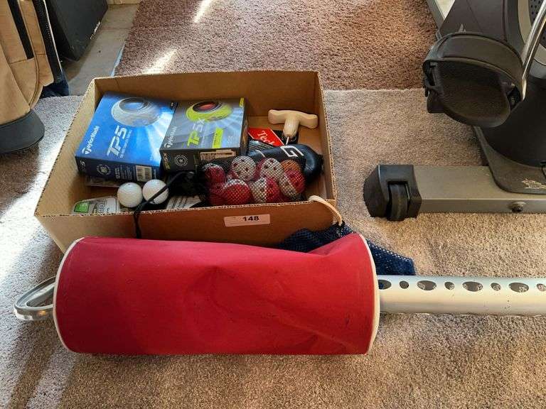 LOT 148 - Golf balls, golf tees, golf ball shag bag