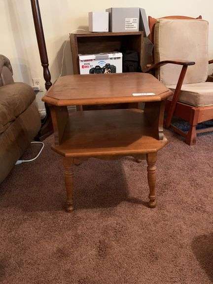 vintage Heywood-Wakefield mid-century modern two-tier end or side table, likely crafted from solid birch.