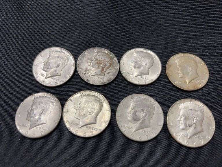 8 - 1967 Kennedy half dollars. Coins minted from 1965-1970 are composed of 40% silver