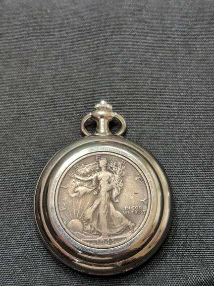 VTG Colibri Pocket Watch 1945 Walking Liberty Silver Half Dollar E Pluribus Unum