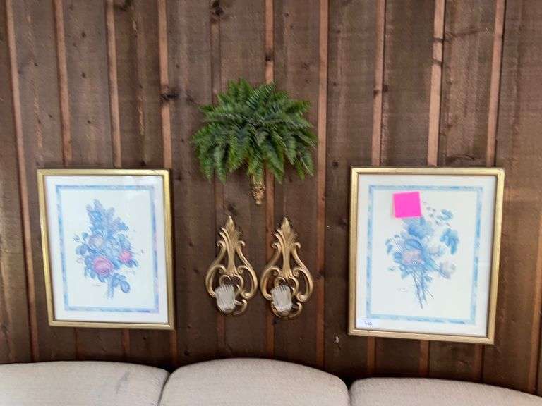 Two framed prints 18 x 22. And other wall decor.