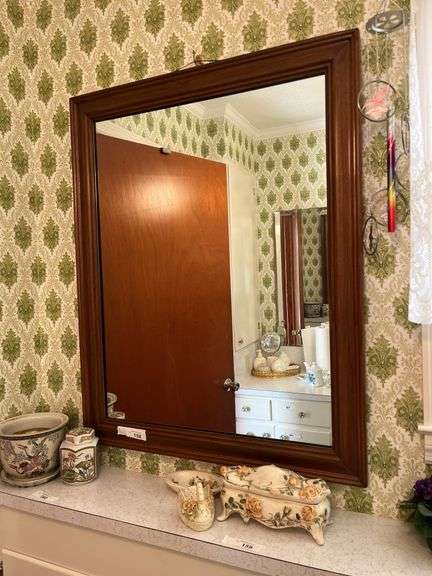 Wood framed wall mirror. 31" x 39"