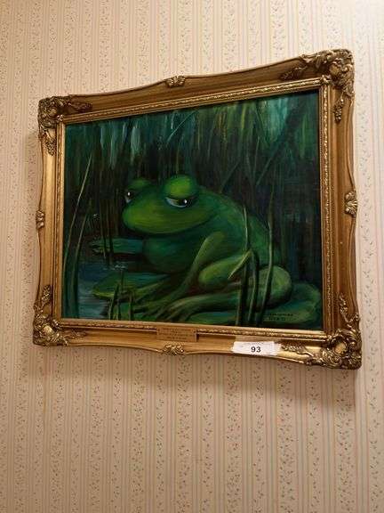 Framed frog painting 23 1/2 inches wide by 20 inches tall