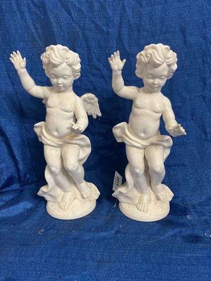 2 Ceramic Angel Cherubs Porcelain Figurines