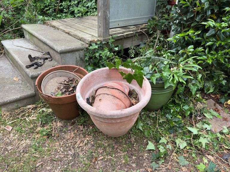 2 3 plastic planters 1clay. Basket & birdhouse clay or terra cotta