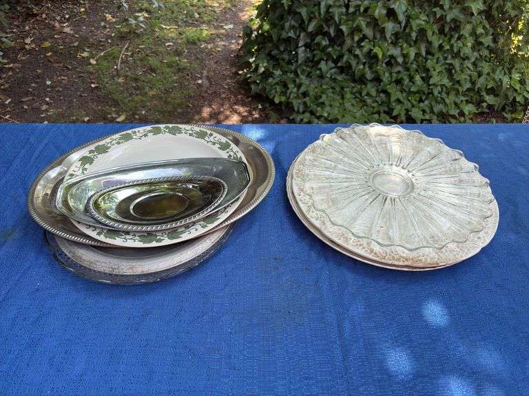 Glass platters, ceramic platter from Japan, Princess Rose Bavaria dish, metal platters and more