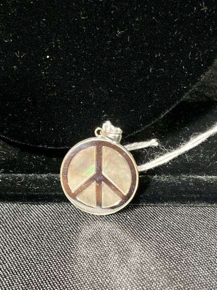 Silver color peace sign with Mother of Pearl like accents