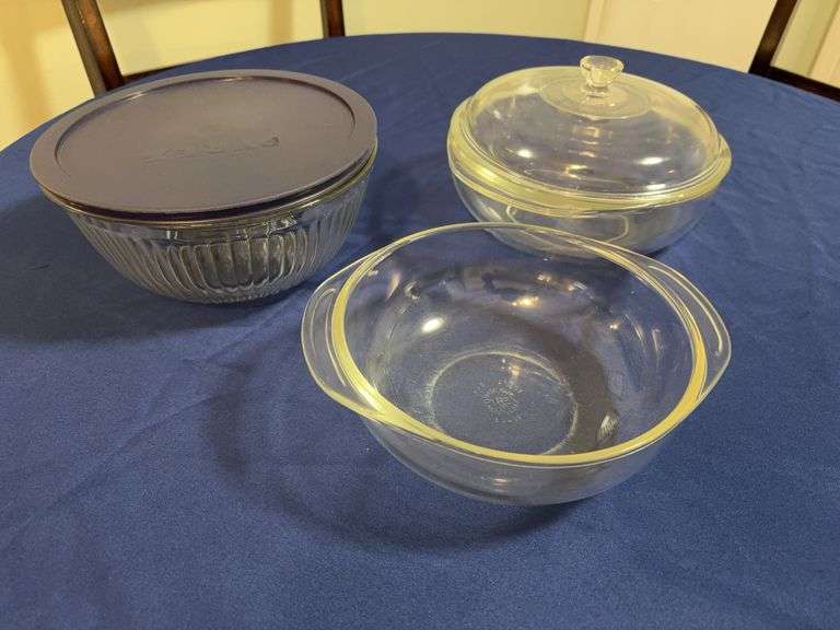 Pyrex 10 cup w/lid; pyrex 2 qt w/lid; Pyrex 1 1/2qt no lid