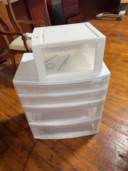 Sterilite 4 drawers storage unit. 22 inches wide by 15 inches deep by 23 inches tall Single drawer storage. 12 x 14” x 8.5 tall