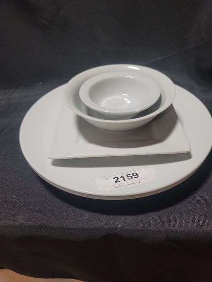 2 plates Bauscher Made in Germany; small bowl Clinton NR China (small chip noted) soup bowl; Fitz & Floyd square plate